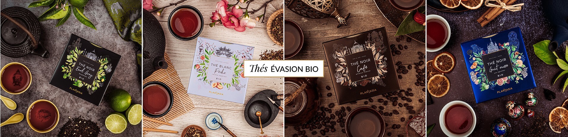 Véritable invitation au voyage et à l’écoute de vos sens, les thés évasion contiennent des mélanges subtils de fruits, d’épices et de plantes venus de Chine et d’Inde pour vous faire découvrir des rituels ancestraux et des recettes traditionnelles issues des 4 coins du Globe.